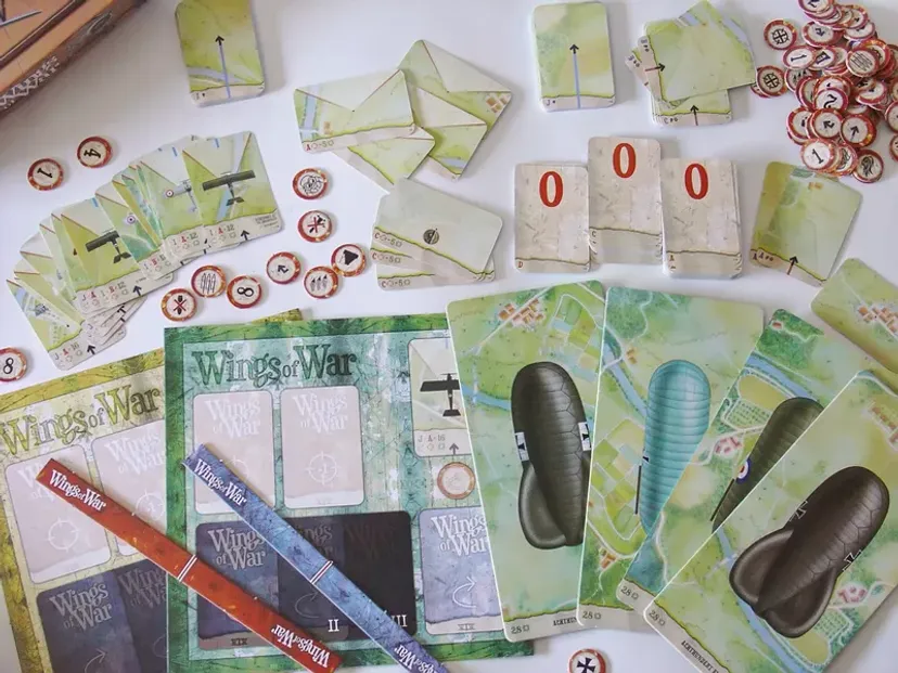 Wings of War: Burning Drachens is the third set in the Wings of War collection. It includes some of the most used airplanes of the WWI as the Nieuport 17-23, the Albatros D.III, the Pfalz D.III/D.IIIa. It also includes optional altitude rules, anti-aircraft guns and machineguns. Other additional rules are proposed for a more intriguing and varied simulation of WWI air combat, even if the basic system is the same, simple one of the first two sets.