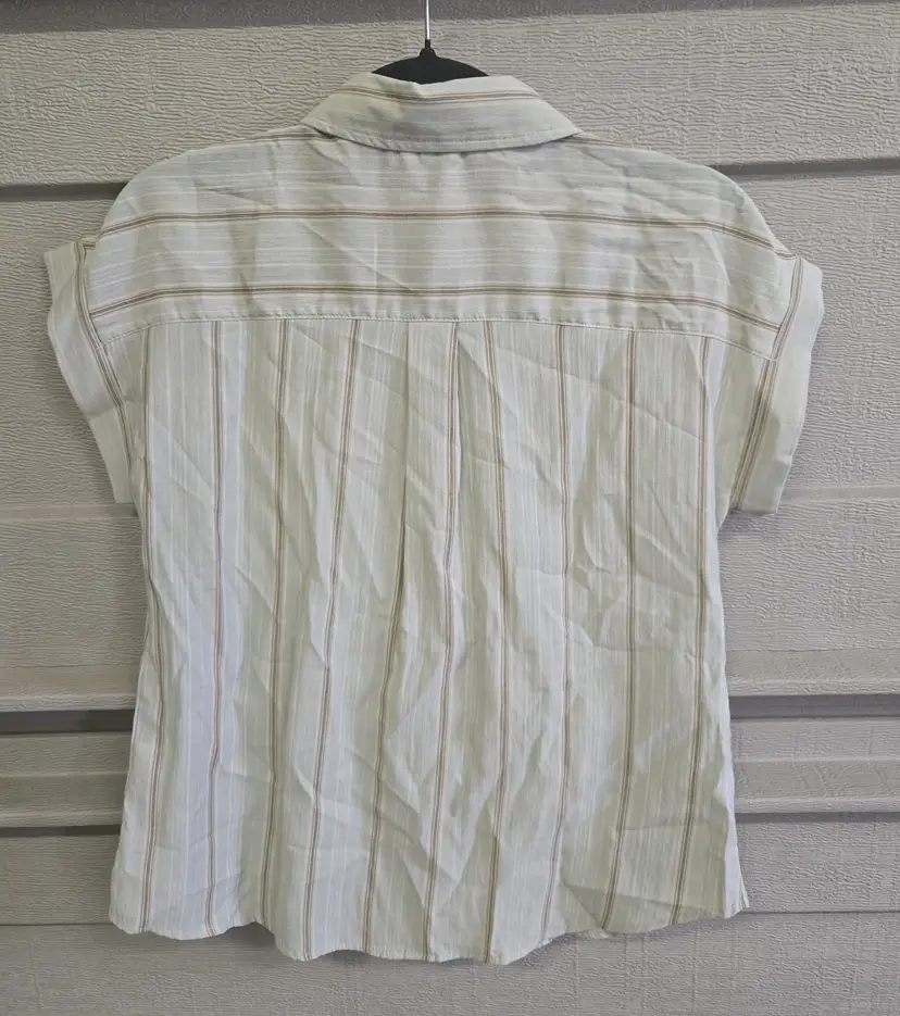 Women's Pinstripe Short Cuff Sleeve Button Down Top Size Small