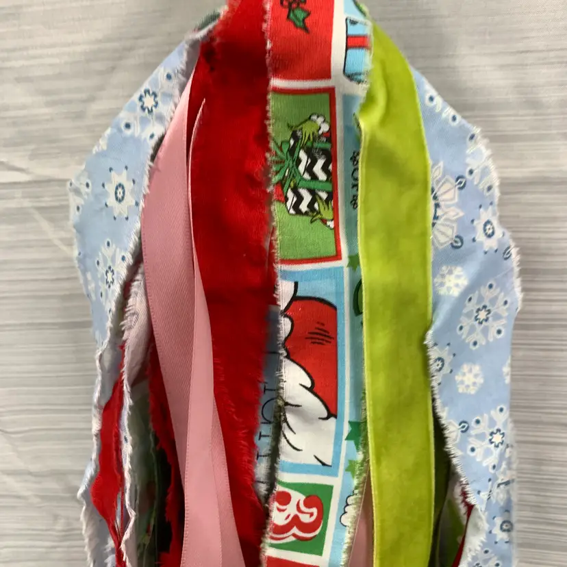 Measures 15 inches from the top of her bow to the bottom of the fabric and 22 inches including the ribbon hanger. Weighs 5 ounces. If the actual postage ends up being less than what you paid, you will be refunded for anything over one dollar.