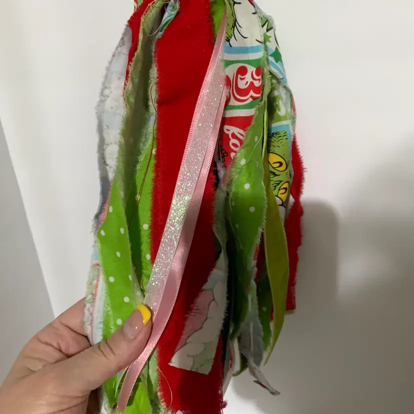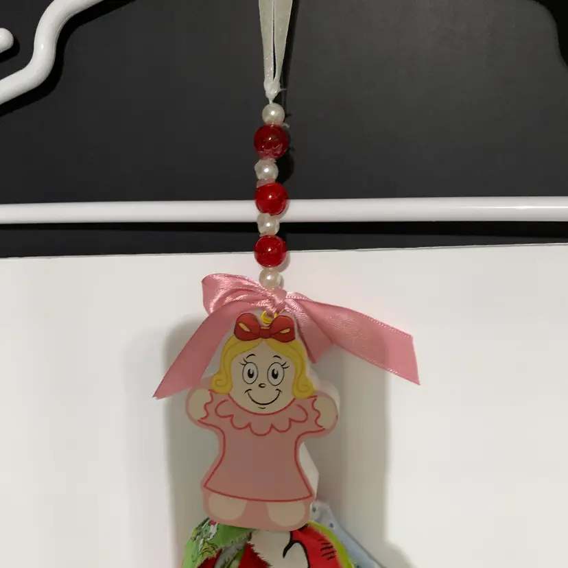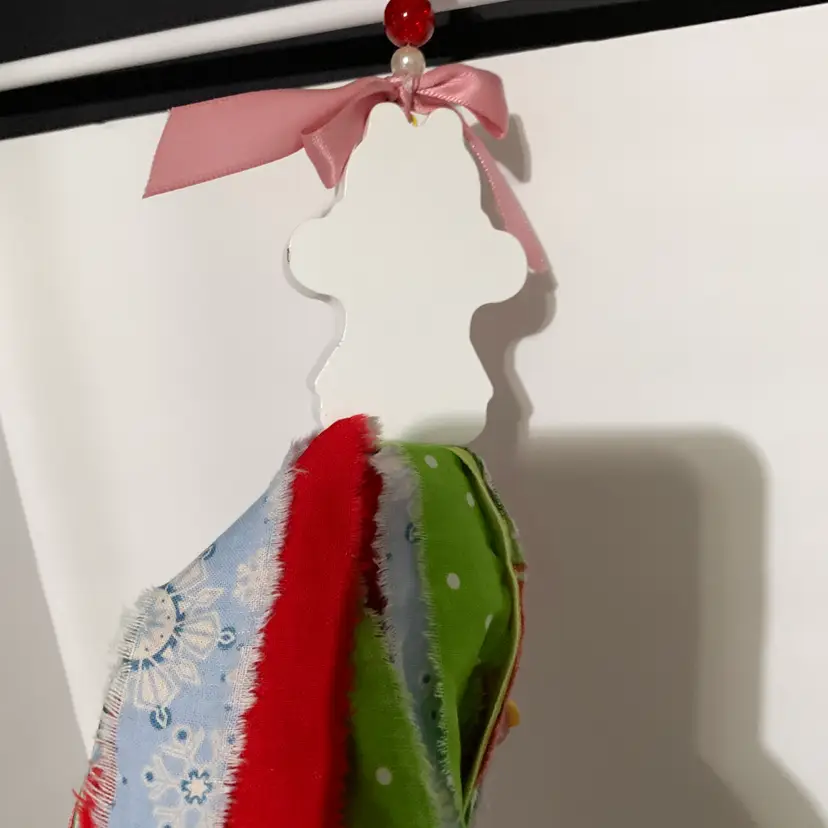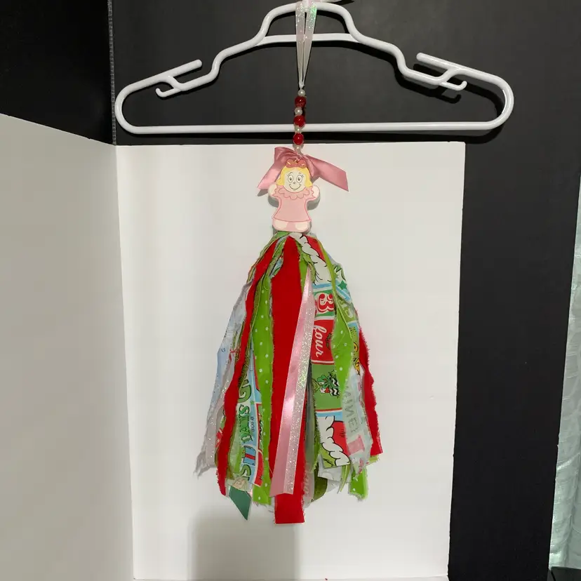 Measures 15 inches from the top of her bow to the bottom of the fabric and 22 inches including the ribbon hanger. Weighs 5 ounces. If the actual postage ends up being less than what you paid, you will be refunded for anything over one dollar.