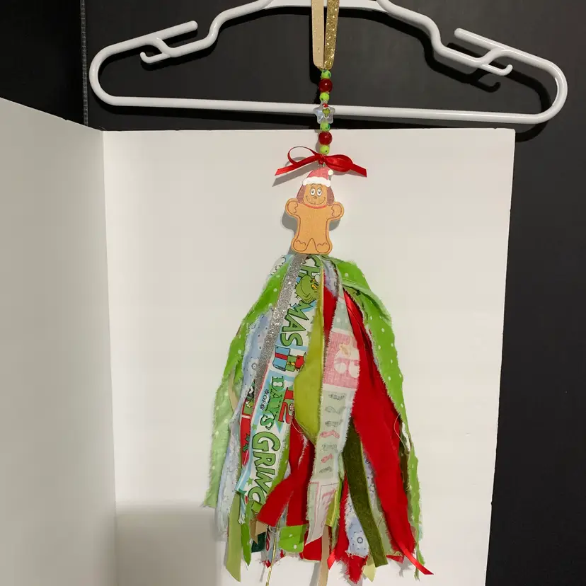 Measures 15 inches from the top of his hat to the bottom of the fabric and 22 inches including the ribbon hanger. Weighs 5 ounces. If the actual postage ends up being less than what you paid, you will be refunded for anything over one dollar.