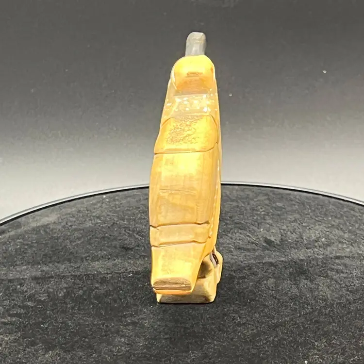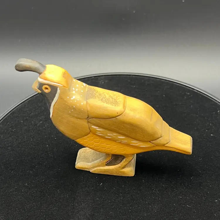 This adorable handcrafted and handpainted vintage wood quail is marked “Stapp” on its base. It measures 4.5” long, 3.25” tall, and 1” wide. There are no call outs. Please see all photos.