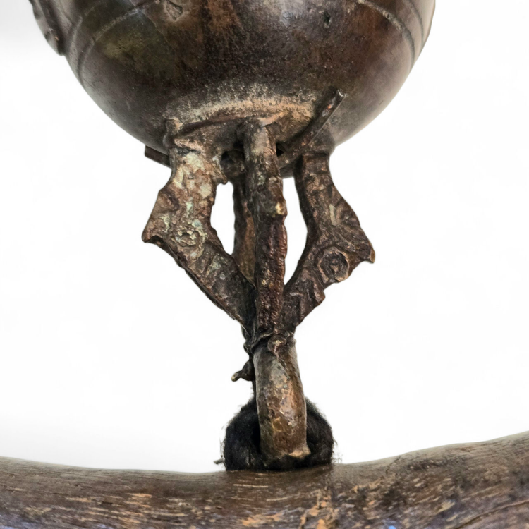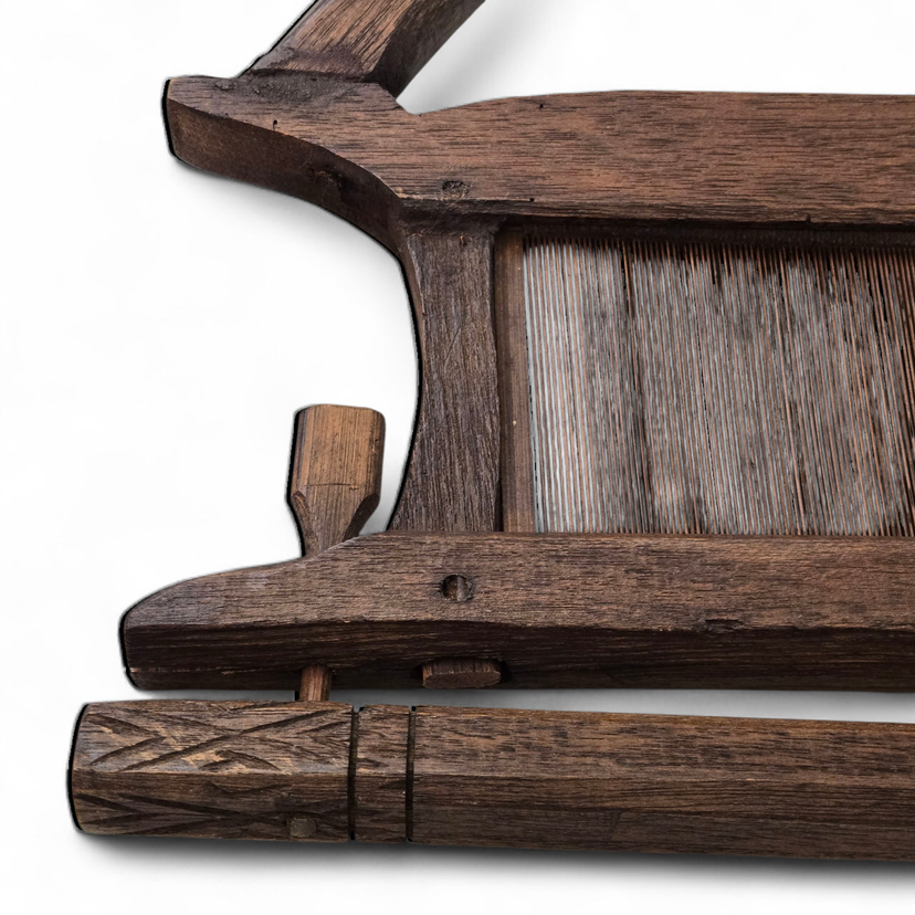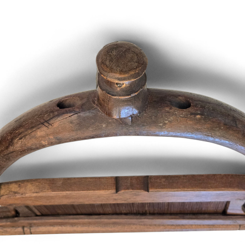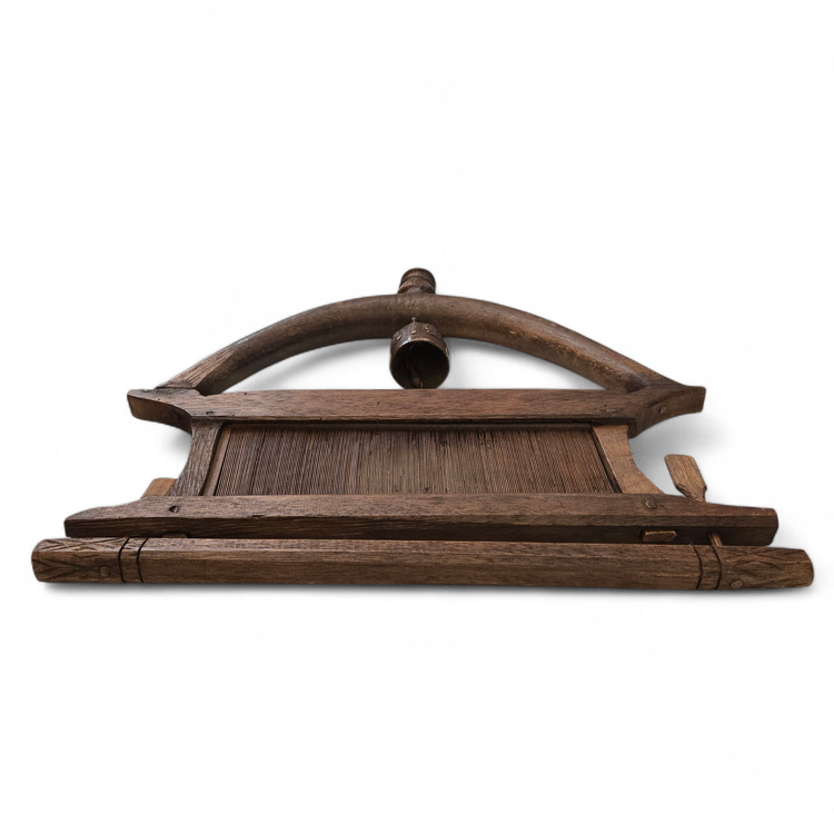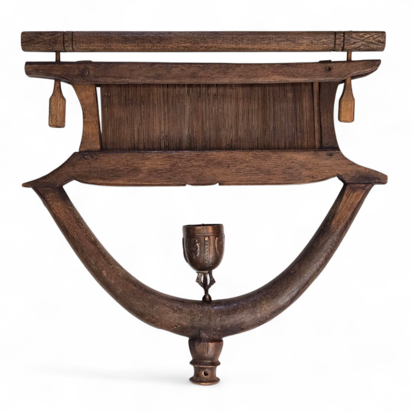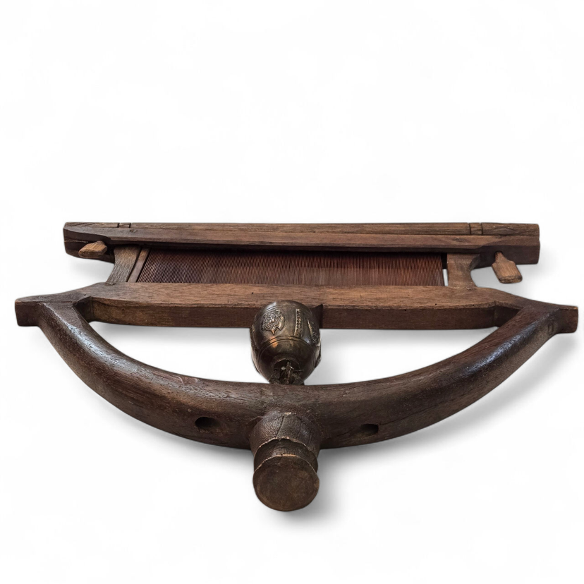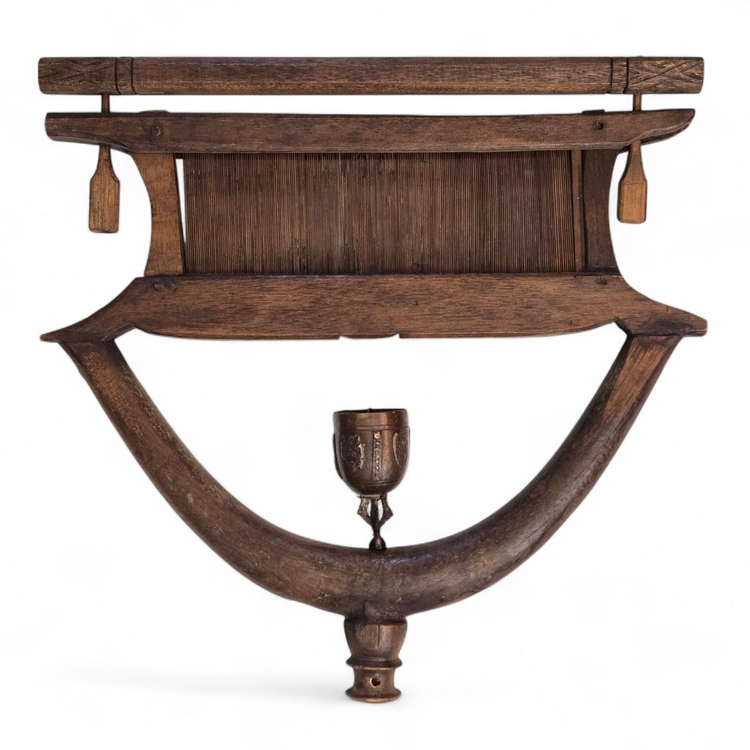 Wood Tapestry Hanger Handmade Metal Brass Bell from Thailand with Condition Issues Unbranded. Used condition with some cracks in the wood, nails holding some parts together (normally no nails), string and wire holding cast bell to frame, scratches, nicks, etc. from actual use. Please view all the photos and please ask any questions prior to purchase when possible.