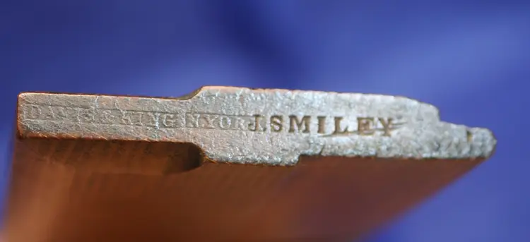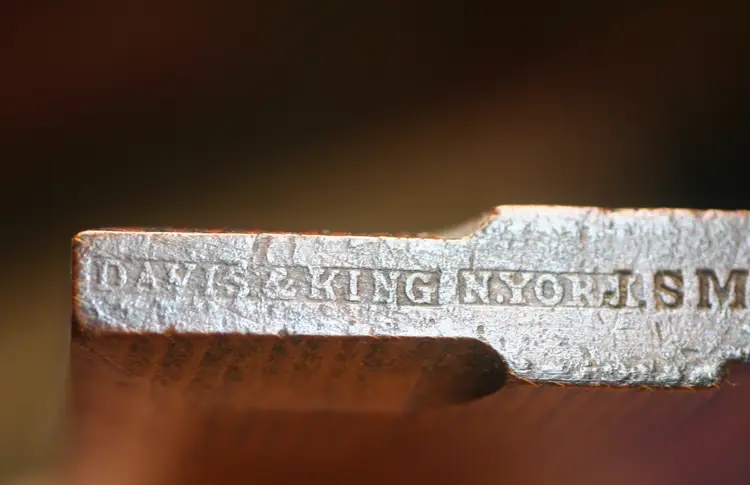 On offer here is a vintage wooden molding plane in round form (which renders a ‘hollow’ profile) and in good used condition. Please see photos for condition, dimensions and markings. Some background information gathered from American Wooden Planes by Pollack: Possibly a partnership between Moses H. Davis and Josiah King in New York City. Dates are not known, but are probably before 1850. Rarity Rating: ** Rare