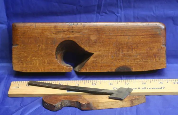 On offer here is a vintage wooden rabbet plane in good used condition. Body has been modestly compassed at toe and heel – more so to the heel - while the center is flat – this most certainly was a user modification. Iron could use some sharpening.