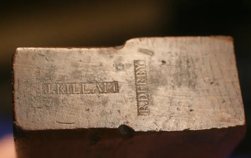 Some background information gathered from American Wooden Planes by Pollack: James Killam (b. 1798 in CT) was a Glastonbury, CT planemaker, active from 1822-60. Rated: * Uncommon mark The second mark "R. DERBY" is also listed by Pollack as 'UR' (Unrated due to insufficient information).