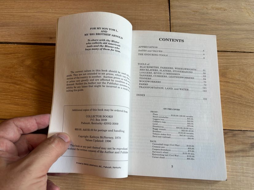 Three great books on hand tools, each focusing on a different aspect: the McNerney highlights antique tool identification and values (would use values as a respective as values are from 1996), Dunbar's book focuses more on using and caring for these tools than valuation/identification, and Rae's book is a modern look at high quality hand tool use and care.