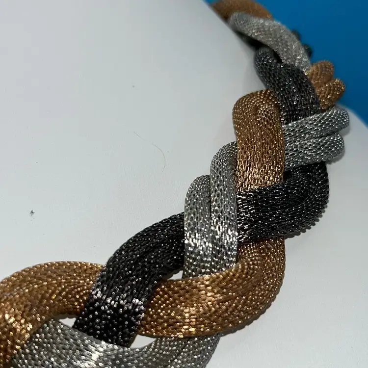 Woven Mesh Necklace Tri-Color 18-20” Long