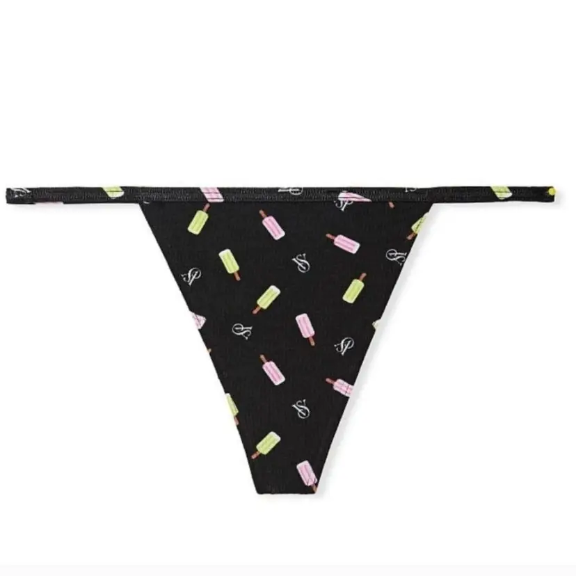 VICTORIA'S SECRETStretch Cotton V-String Panty Black Colorful Popsicles