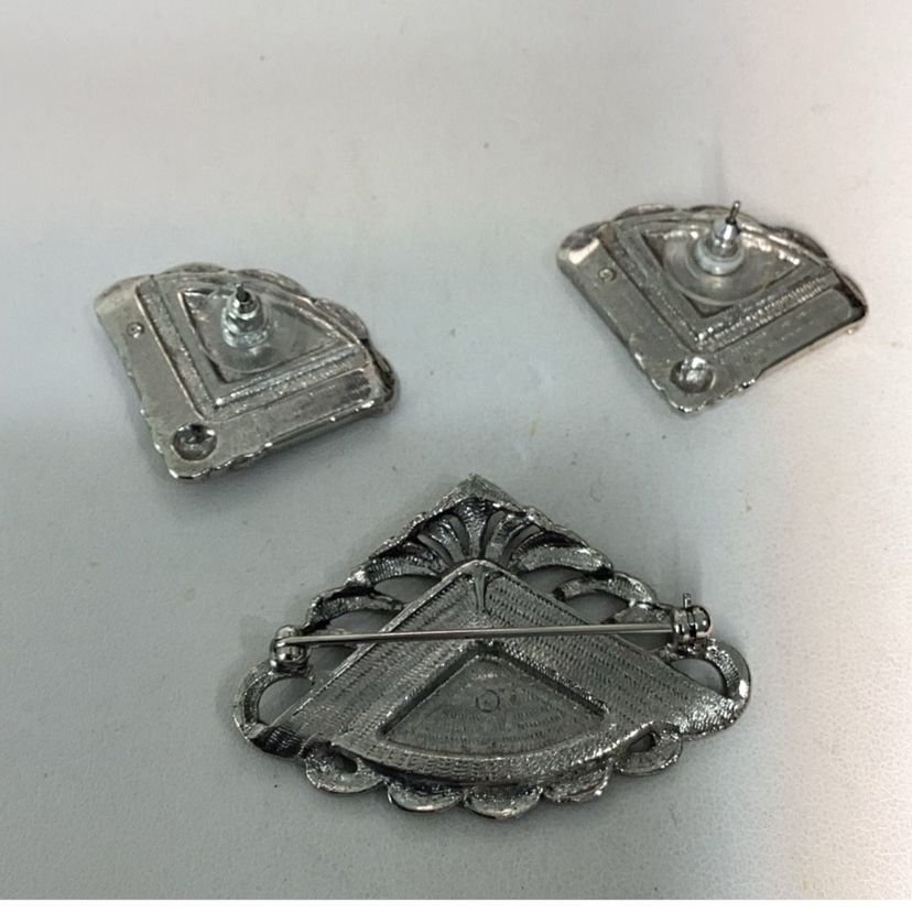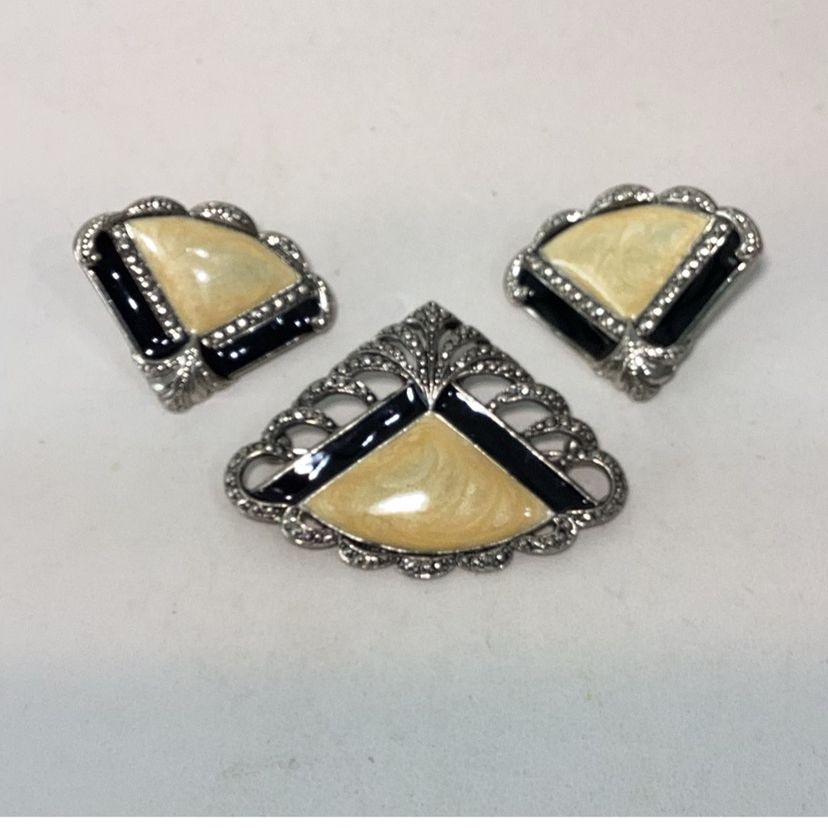 Yellow & Silvertone Brooch & Earrings