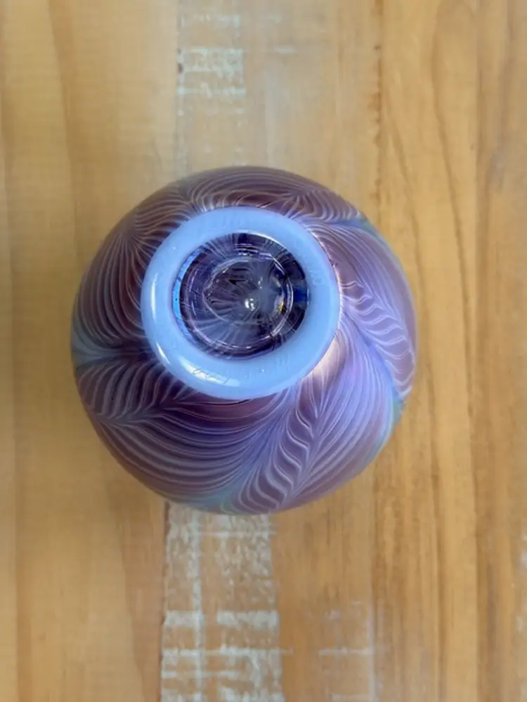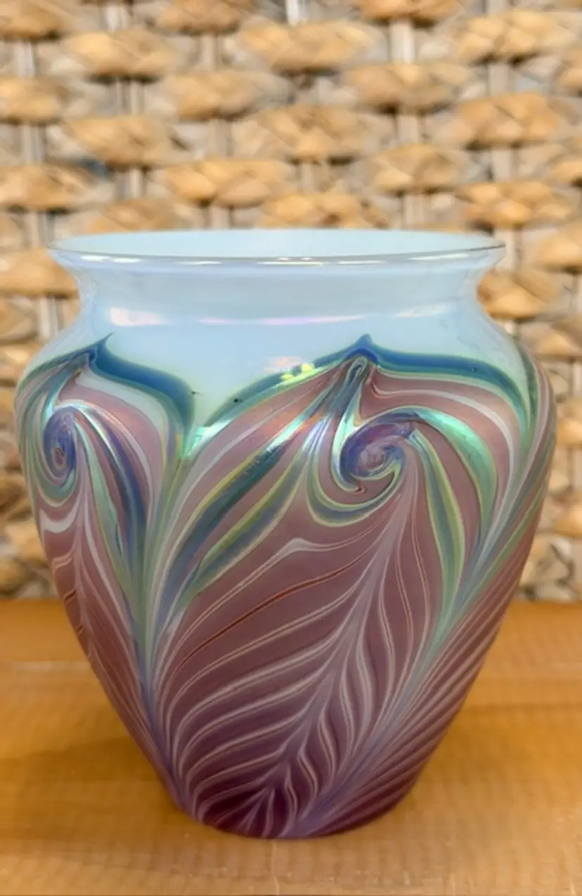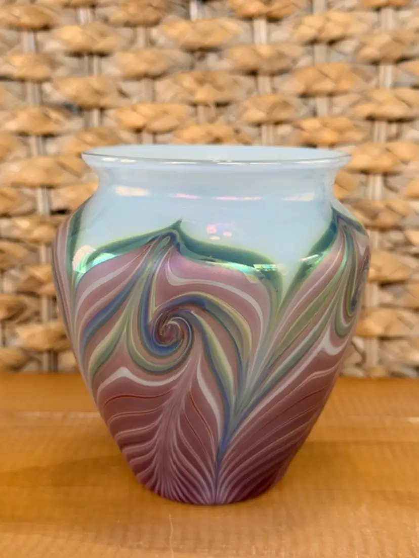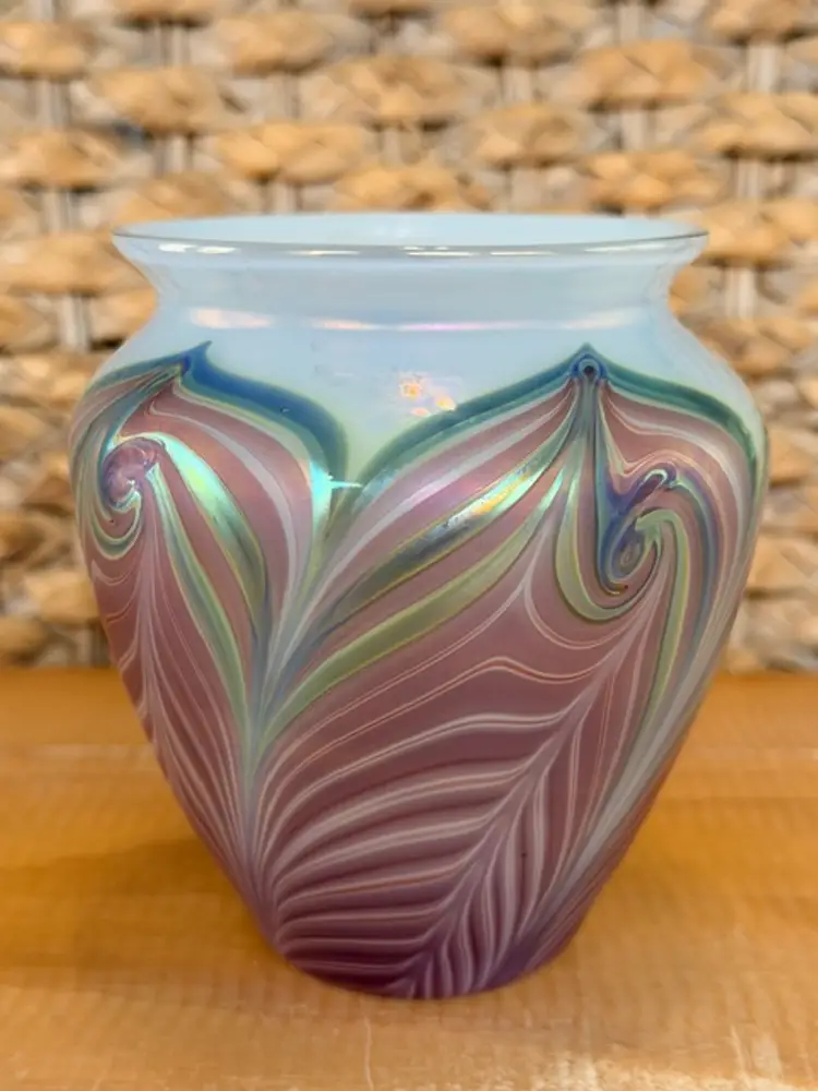 Zellique Studio Art Glass Vase Iridescent Pulled Feather California