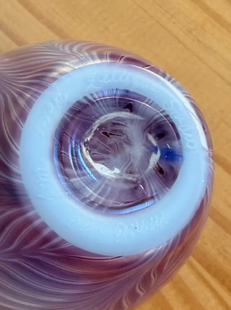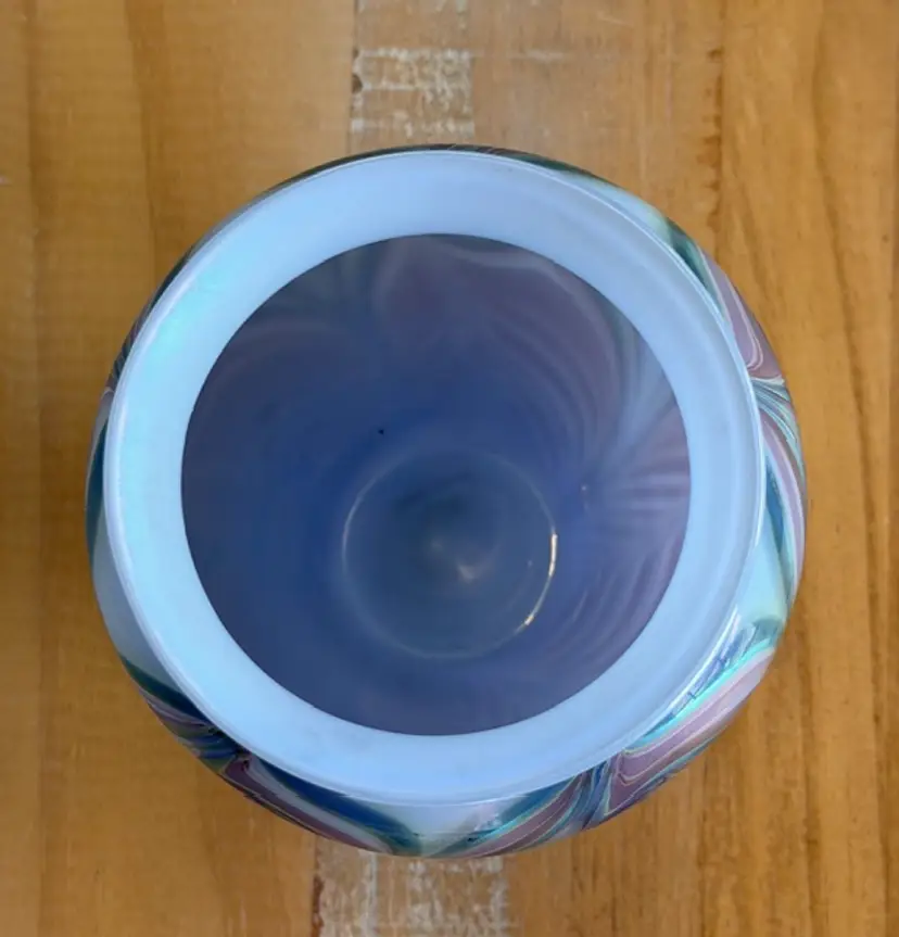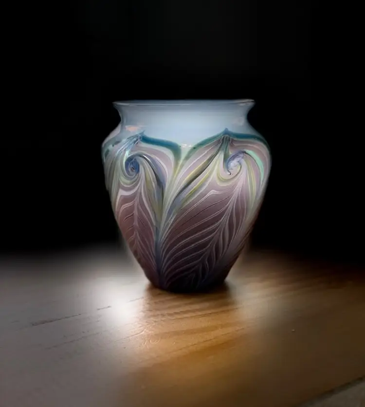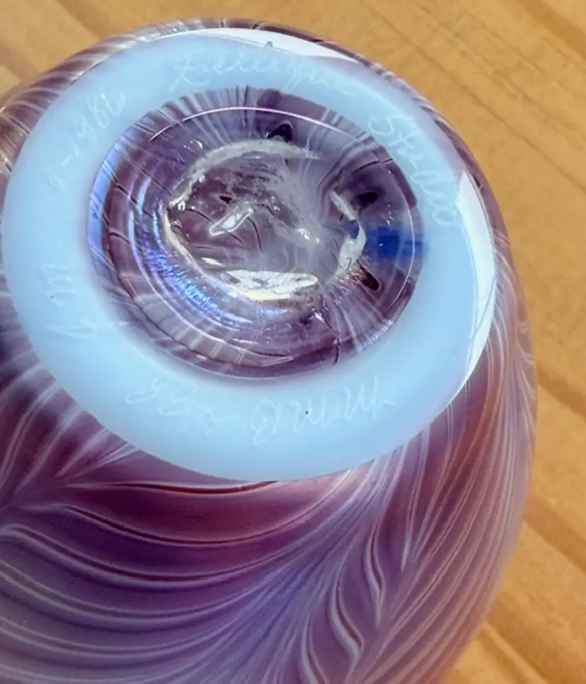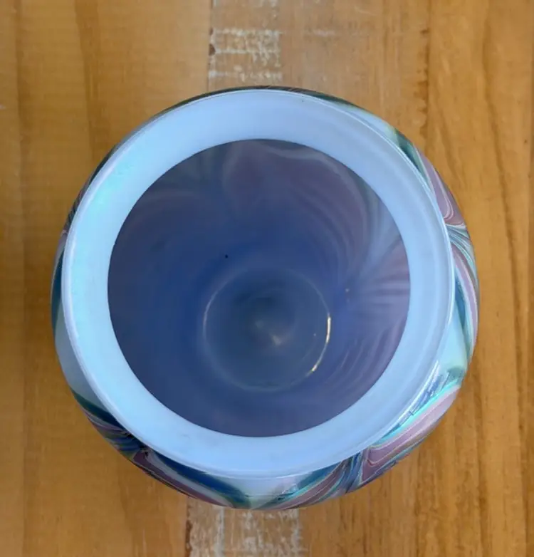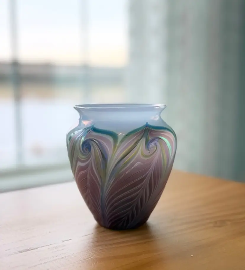 Zellique Studio Art Glass Vase Iridescent Pulled Feather California