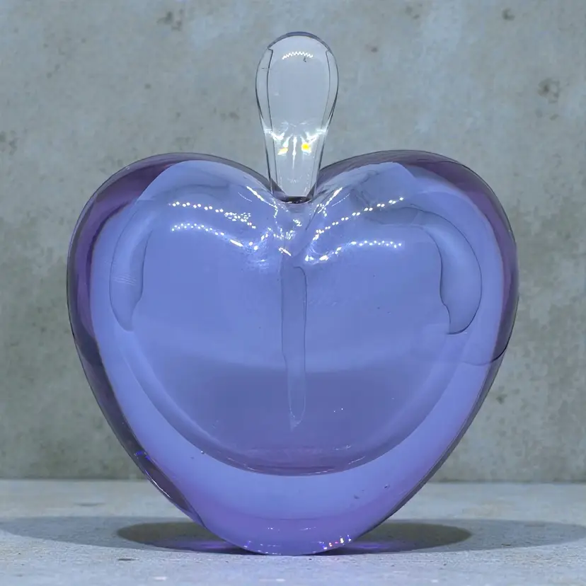 Zellique Studios Purple Lavender Crystal Glass Heart Shape 4" Perfume Bottle. Stopper has a chip at the bottom. See photo.