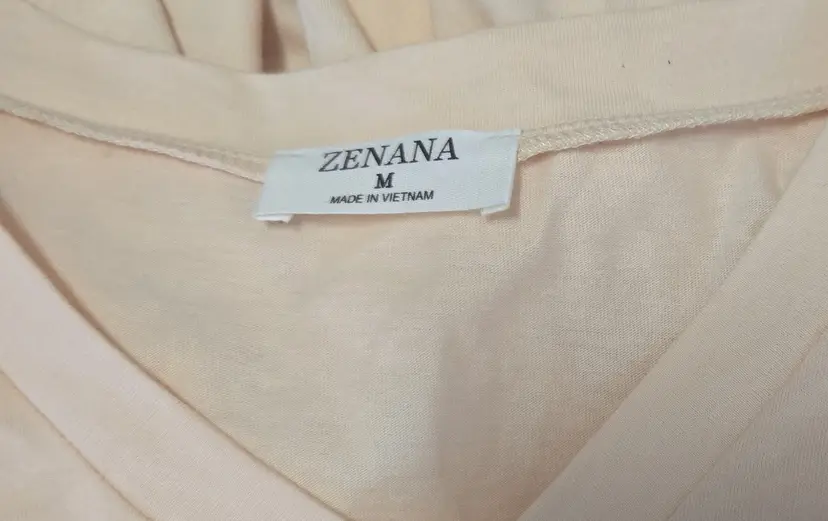 Zenana Women's Cream Short Sleeve V-Neck Size Medium